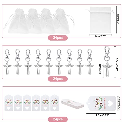 Punvot 24 ciondoli a Forma di Angelo Custode, Regali per Gli Ospiti, Battesimo, Angelo, Piccoli Regali per colleghi, Matrimonio, Sacchetto in Organza + Biglietto di Ringraziamento, per Comunione