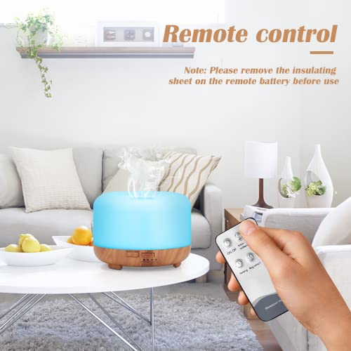 Punvot Diffusore di Oli Essenziali, Diffusore di Aromi ad Ultrasuoni 450ml Umidificatore Diffusore di Aromi Elettrico con 7 Colori LED e Telecomando Diffusore di Essenze per Yoga Spa Ufficio Casa