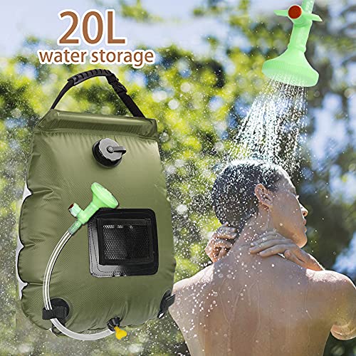 Punvot Doccia Solare Campeggio, 5 Gal / 20L Borsa da Bagno per Doccia Esterna Portatile Solare Riscaldato Sacchetto con Tubo Flessibile Rimovibile Soffione Estraibile per Campeggio Escursionismo