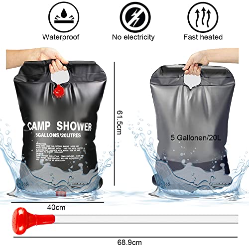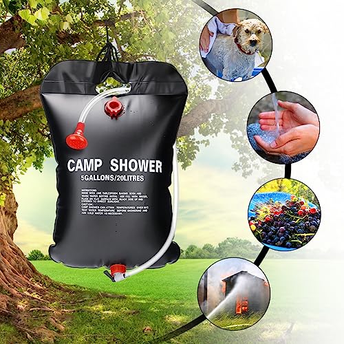 Punvot Doccia solare da campeggio, 20 l, borsa da doccia solare, borsa da campeggio, doccia solare da giardino, per esterni, doccia da viaggio con tubo doccia, sacco d'acqua solare per giardino