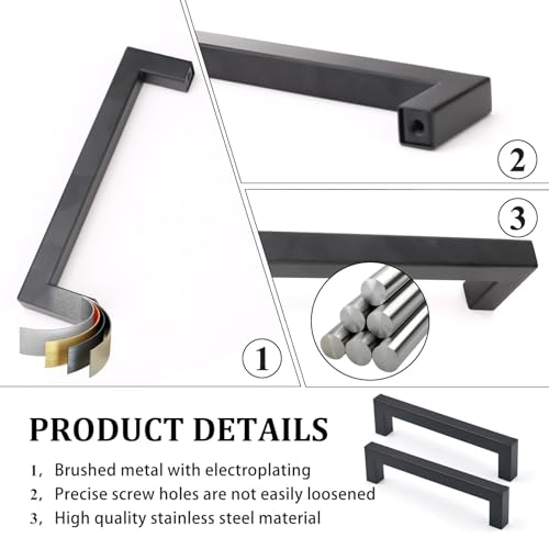 【Materiale】Maniglie nere per armadi realizzate in acciaio inossidabile 201 di alta qualità, sono cave, leggere ma durevoli e resistenti alla corrosione, possono essere utilizzate per molti anni. Le filettature ben realizzate mantengono le maniglie stabili e sono facili da installare. Il materiale ispessito non è facile da danneggiare e il filo profondo è più stretto e non cade facilmente.