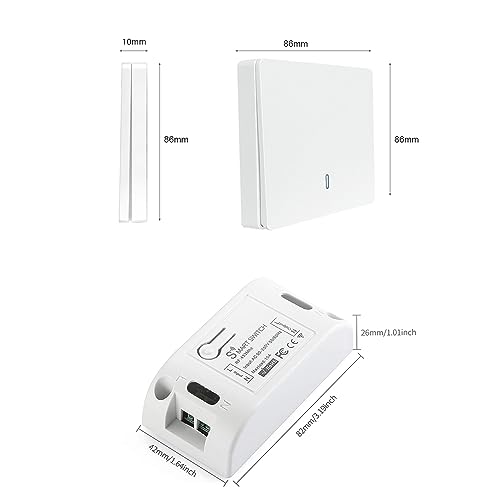 Punxasl Kit interruttore wireless RF433 Telecomando a parete + Mini relè radio per montaggio a incasso nessun cablaggio necessario modulo interruttore (1 interruttore + 1 ricevitore)
