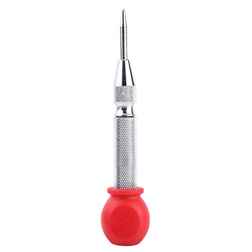 Punzone automatico a percussione Punzone centrale, cappuccio protettivo MetalWorking Strumento automatico per punzonatura punzonatura(Silver + red protective cap)