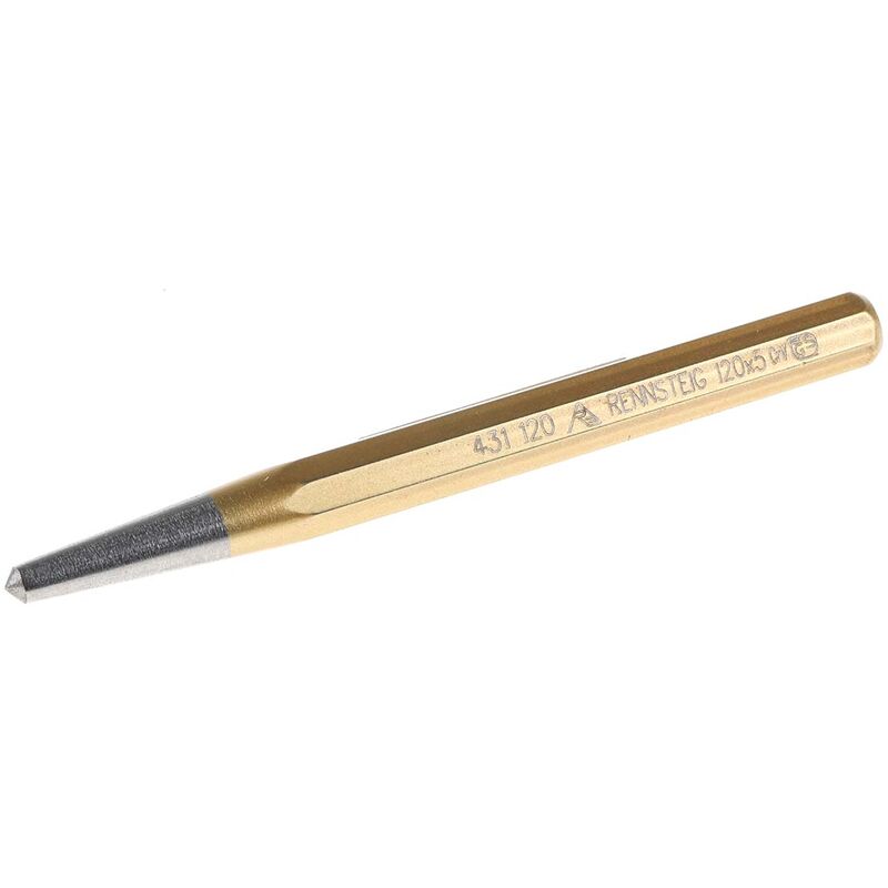 Diametro gambo = 10,0 mm Numero di pezzi = 1 Tipo punzone = Bulino DIN 7250. Punzonatrice centrale, DIN 7250. Pin lucidato Stelo presa ottagonale, verniciato a oro. Le punzonatrici centrali sono in acciaio temprato al cromo-vanadio Il multi-rivestimento della testa di impatto elimina praticamente le scheggiature e la dilatazione.