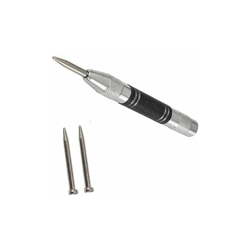Pratico: il funzionamento con una sola mano è facile senza martello. Segna il punto di partenza della fossa sulla superficie di metallo, legno, vetro, pelle o plastica per evitare che il trapano o la vite scivoli Dimensioni: punzone centrale automatico da 5 pollici, con punta cromata e acciaio inossidabile di alta qualità il corpo in acciaio, con struttura zigrinata antiscivolo, può offrirti un funzionamento molto comodo e preciso Design a molla: design a vite di tensione, basta ruotare la manopola per impostare la tensione migliore. La doppia pressione dell'impatto del cilindro a molla fornisce la rientranza corretta per il materiale che stai utilizzando Multifunzione: non solo un punzone centrale, ma anche uno strumento di sicurezza sull'auto. Può facilmente rompere i finestrini dell'auto per aiutarti a scappare in caso di emergenza Confezione: il set contiene 2 punte di ricambio di durezza 58, che è conveniente per la tua sostituzione.