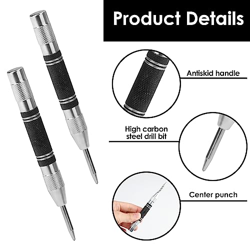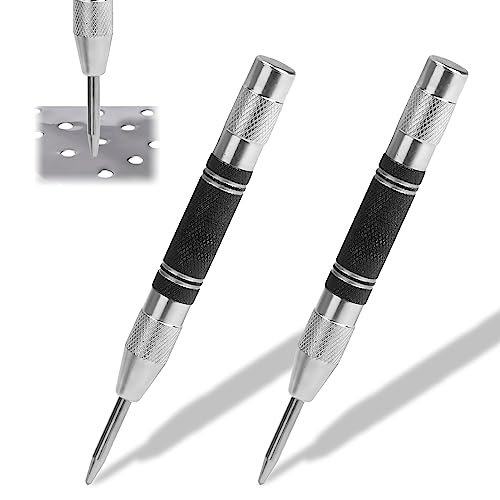 Punzone Centro Metallo, 2 Pezzi Punzone Center Automatico Strumento di Punzonatura Centrale Punte Punzonatrice Regolabile Punzoni a Molla Automatico, per Legno, Metallo (128mm)