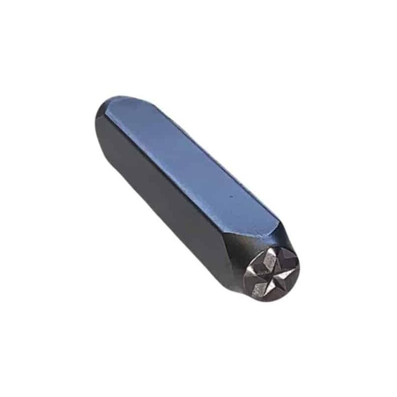 Punzone per incisione su metallo realizzato in acciaio al carbonio. Impronta a stella con altezza di 4mm. ALTEZZA PUNZONE 6CM