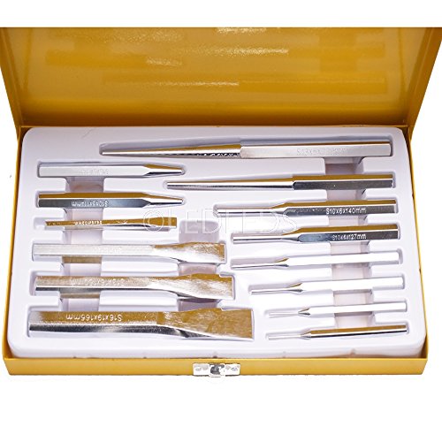 SET PUNZONI SCALPELLI 14pz CACCIASPINE BULINO PIATTI CUSTODIA PUNTE ACCIAIO CV