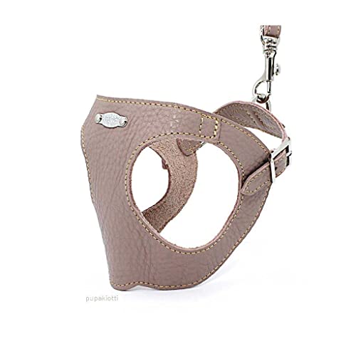 PUPAKIOTTI Basic Pettorina cane Taglia Piccola | Pettorina cani Ergonomica e Regolabile in Vera Pelle Fatta a Mano in Italia (3XL-4XL, Tortorino)