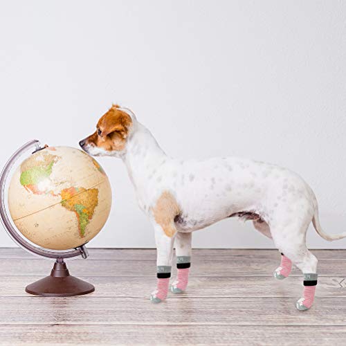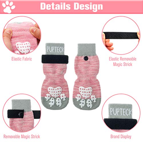 PUPTECK Calzini per cani antiscivolo a doppio lato con cinghie regolabili per uso interno, 2 paia di calzini per il controllo della trazione su pavimento in legno duro