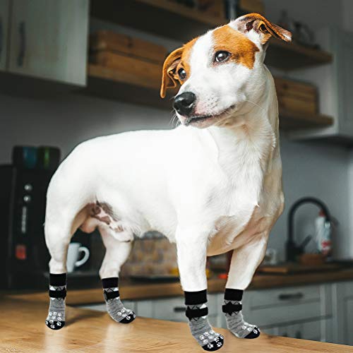 Pupteck, calzini antiscivolo a doppio lato, per cani, confezione da 6 pezzi, con cinghie regolabili e classico motivo a rombo scozzese, protezione per cuccioli e animali domestici