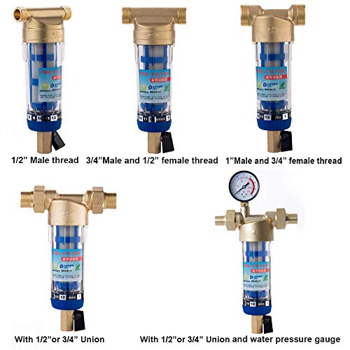 Purely life sifone risucchio Pre-Filtro con Wiper depuratore 40 Micron in Acciaio Inox la casa Pre-Filtro con manometro Acqua 3/4"Maschio a 1/2" Female