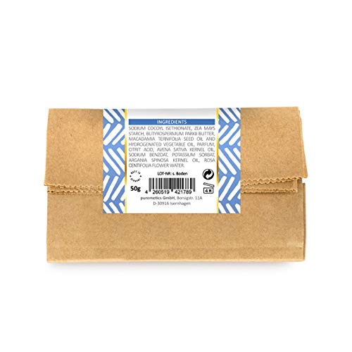 Puremetics Zero Waste Shampoo in polvere "Macadamia latte d'avena" (50 g = 200 ml) per capelli danneggiati e danneggiati, vegano e senza plastica