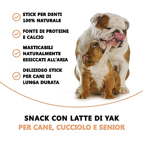 STICK PER DENTI 100% NATURALI: Offri al tuo cane una deliziosa barretta di latte di yak con soli ingredienti naturali. I nostri snack per cani non contengono zuccheri aggiunti né sale. Sono anche senza glutine.