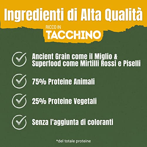 Purina Adventuros Ancient Grain e Superfood sono snack per cani che combinano il gusto selvatico del tacchino con la bontà del miglio e l'aggiunta di superfood come piselli e mirtilli rossi