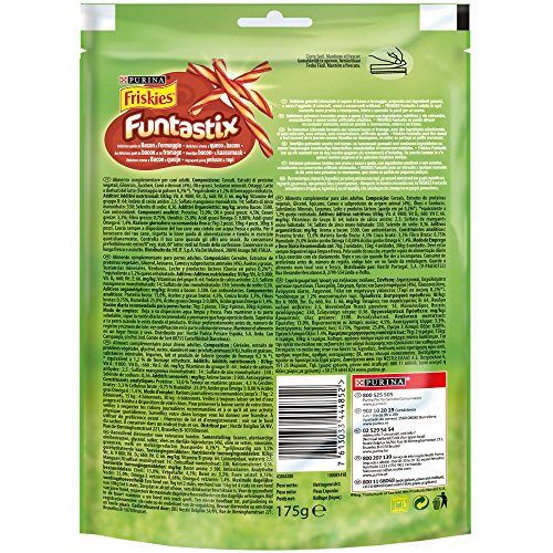 Purina Friskies Funtastix Snack per Cani al Sapore di Bacon e Formaggio, 6 Confezioni da 175 g