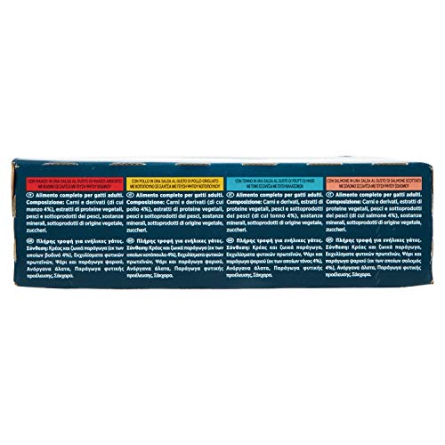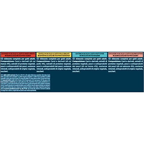 PURINA GOURMET PERLE Umido Gatto Trionfo di Salsa con Manzo,Pollo,Salmone,Tonno - 8 buste da 85g ciascuna (confezione da 8x85g)