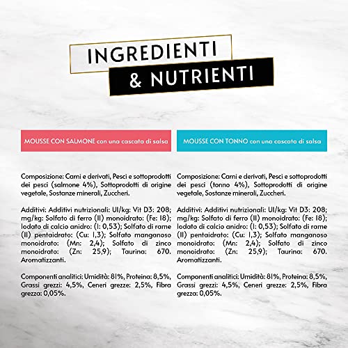 Cibo umido per gatti in delicata mousse con ingredienti di alta qualità