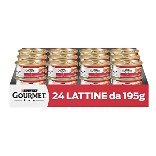 Purina Gourmet Rosso Paté Umido Gatto con Pezzetti con Fegato, Vitello e Verdure, 24 Lattine da 195g