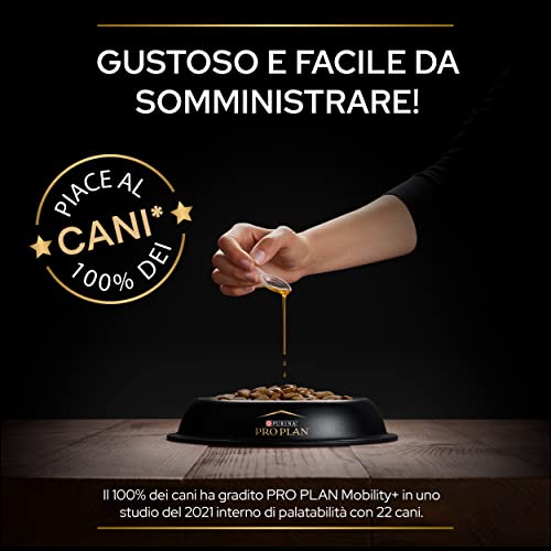 Purina Pro Plan Mobility+ supporta le articolazioni del tuo cane grazie ad una miscela concentrata di membrana d'uovo (fonte di collagene), acido ialuronico purificato, valva di cozze verdi e glucosamina ed è formulato scientificamente per: SUPPORTARE IL MOVIMENTO E LA FLESSIBILITA' ARTICOLARE;