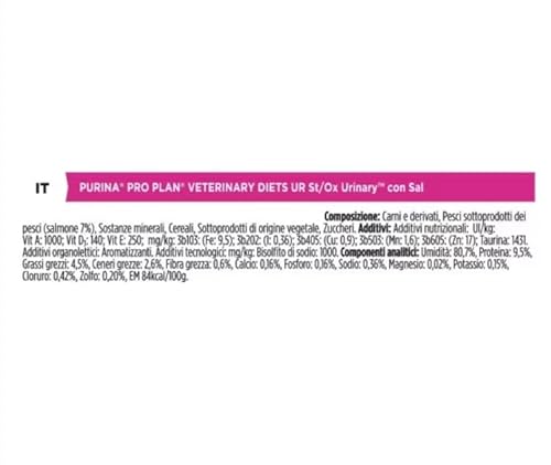 PURINA PRO PLAN VETERINARY DIETS umido gatto UR Urinary St/Ox - salmone 10 x 85 g- 4 Confezioni