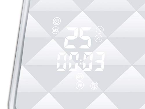 ELEGANTE Design a parete bianco, compatto (54x19x12cm) e leggero (6kg), è molto facile da appendere al muro, include tutto il necessario per l'installazione e riscalda le superfici fino a 12m2.