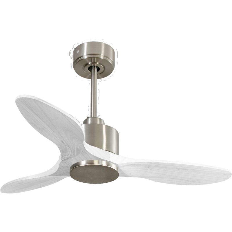 Il motore DC3 SLIM in argento consente l'installazione su tetti con un'inclinazione fino a 27 cm e viene fornito con due montanti per l'installazione alla giusta altezza (13,5 cm e 25 cm). È perfetto per 2 o 3 lame, poiché ha una funzione di autobilanciamento. Accetta anche un kit luci. Questo modello è reversibile, destratificatore d'aria, per cui in inverno è possibile invertire le sue pale in modo che il suo movimento sposti l'aria calda verso il basso, fungendo da complemento al sistema di riscaldamento e favorendo l'ottimizzazione dei consumi. Include anche un termostato nella sua base, in modo da poterlo programmare affinché il ventilatore funzioni in base alla temperatura ambiente. Tra i suoi numerosi vantaggi ci sono le 6 velocità, il timer (8h) e la possibilità di controllo a distanza tramite telecomando, controllo a parete e connessione WiFi con l'applicazione Tuya Smart, in modo da poter utilizzare il ventilatore da qualsiasi dispositivo mobile. Dispone inoltre del sistema