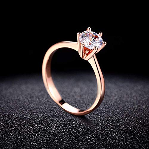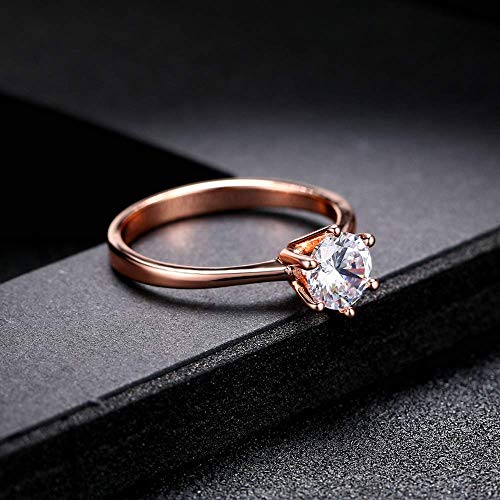 Purmy Anello delle Donne Placcato Oro Rosa Incolore Cubic Zirconia Sei Artigli Zirconia Rotondo Brillante Semplice Stile Taglia 15