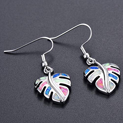 Purmy PlacGattao in oro bianco donne Orecchini pendenti con Opale colorato,Regalo a forma di cuore a forma di cuore