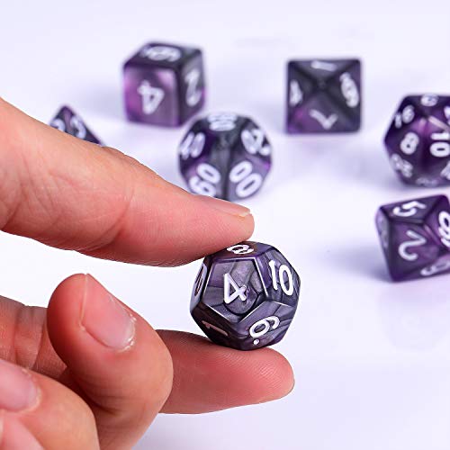 Purple Black - - Polyhedral 7-Die Dice Set for Dungeons and Dragons with Black Pouch (Purple Grey)