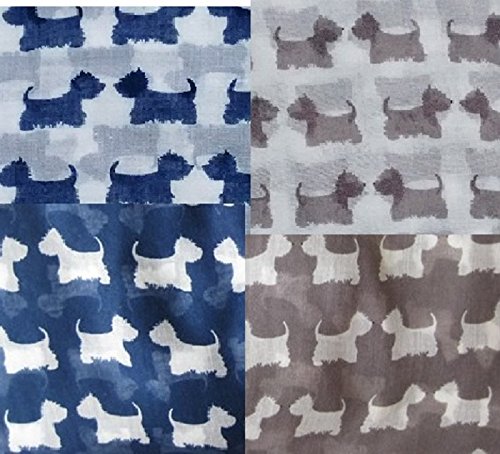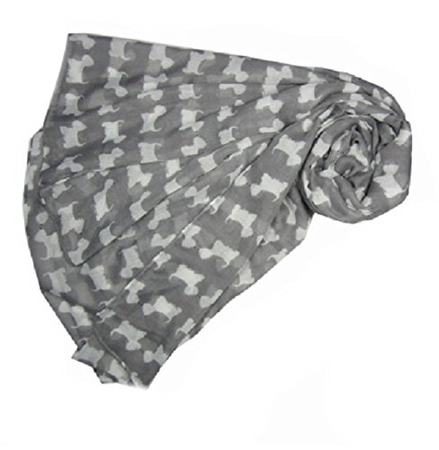 Sciarpa con stampa di cane Westie, grigia con stampa di cani bianchi con piccoli nasi neri, lunga, larga e molto morbida.