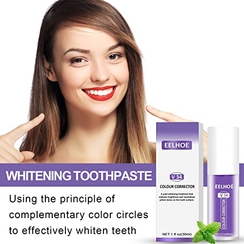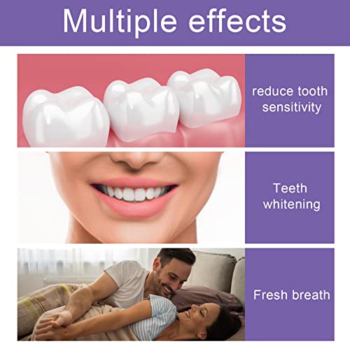 【Alito Fresco】Dentifricio viola sbiancante contiene ingredienti vegetali naturali e v34,il gusto è duraturo e fresco. Whitening toothpaste rimuove efficacemente i residui e gli odori dai denti e aiuta a rinfrescare l'alito con delicatezza. Kit sbiancante denti migliora la protezione contro la sensibilità futura promuovendo uno smalto forte e riparando le aree danneggiate dello smalto, dentifricio sbiancante fornisce una freschezza della bocca di lunga durata.