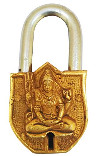 Purpledip fatto a mano in ottone antico lucchetto con Mahadev Idol (10011)