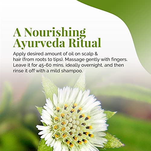 Una miscela unica di erbe, oli biologici certificati infuso con pressato a freddo extravergine Authentic Ayurveda per promuovere sano, nero e capelli spessi