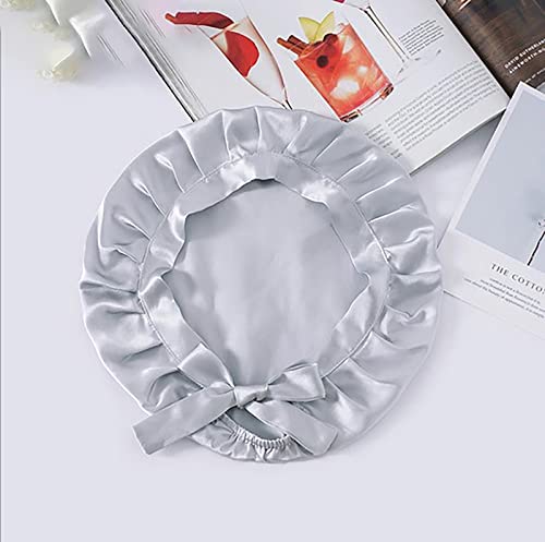 Puseky Cuffia da notte in seta di gelso per donna con nastro elastico per capelli Wrap grigio argento