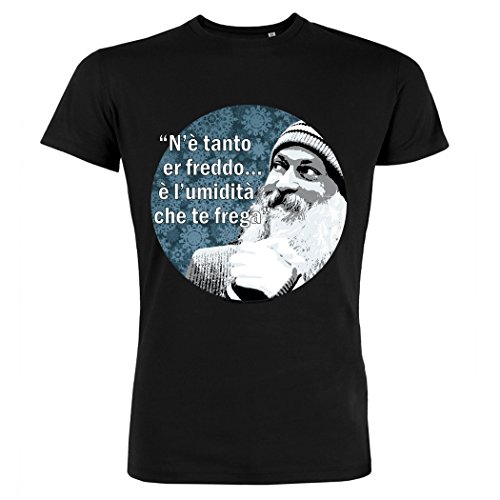 Pushertees - T-Shirt Uomo Nera OSH-36 le piu belle frasi di osho - Osho divertente - N'e' tanto er freddo è l'umidita' che te frega