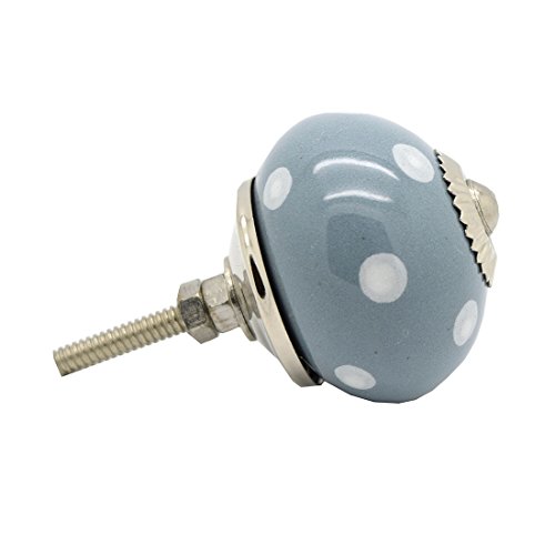 Pushka Knobs Grey & White Spotted Ceramic Cupboard Door Knob - Long Screw by Pushka Knobs