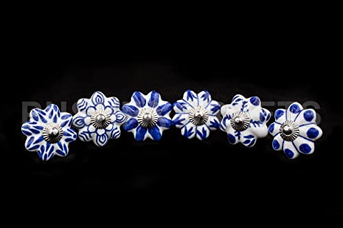PUSHPACRAFTS - Set di 12 pomelli in ceramica blu e bianco