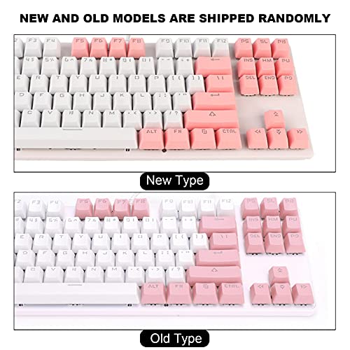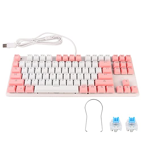 PUSOKEI Tastiera da gioco meccanica 87 tasti Tastiera ergonomica E-Sports Tastiera da gioco USB cablata per computer portatile da gioco per PC(White Pink)