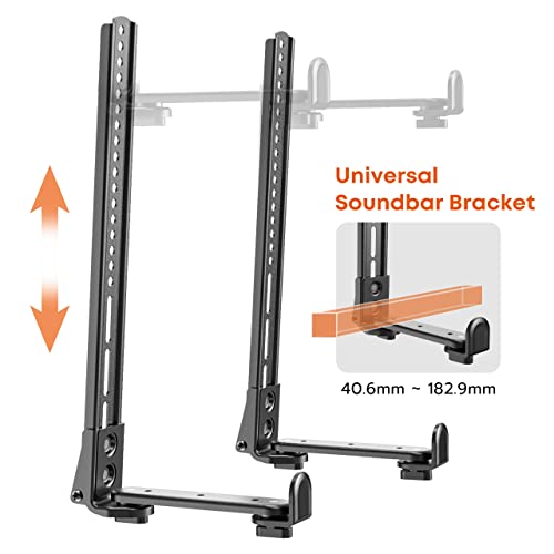【Molteplici Regolazioni】La base il gancio anticadute proteggono la tua soundbar. La base regolabile consente la rotazione di 180°. Adatta a soundbar di profondità 1,6''-7,2''. Consentono di creare una perfetta qualità del suono della sala da concerto.