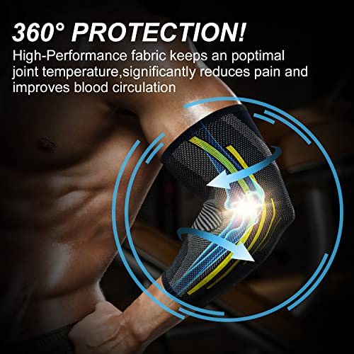 【FIT COMODO】: Indossa la nostra guaina di compressione del gomito leggera, Compatta e Discreta sotto i vestiti per aiutarti a trascorrere l'intera giornata. Il tutore per il gomito di qualità superiore ti fa stare a tuo agio e ti fornisce un Supporto adeguato, così puoi goderti le tue attività quotidiane e sportive