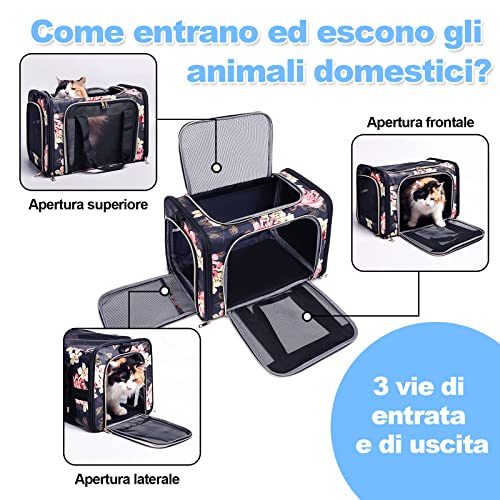 PUTUO Trasportino Gatto Cani Coniglio: Trasportino Cane Taglia Piccola con Spallacci Regolabili Borsa Trasportino per Cani e Gatti Pieghevole Applica a Macchina Treno Aereo - Fino a 8 kg (Fiore)