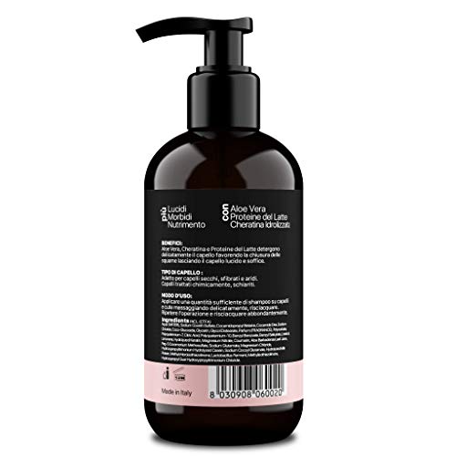VANTAGGIO: Aloe Vera, cheratina idrolizzata e proteine del latte nutrono delicatamente i capelli, favorendo la chiusura delle squame, lasciando i capelli lucidi e morbidi.