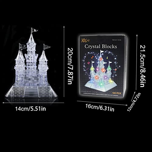 DRXX Puzzle 3D Castello Puzzle 3D di Cristallo Originale Deluxe Mattoncini Giocattoli Fai da Te Puzzle Musicale 3D Castello di Cristallo per Adulti e Bambini Rompicapo Base Luminosa Inclusa 105 Pezzi