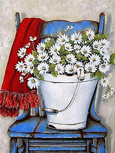 Puzzle Classico In Legno Per Adulti 1000 Pezzi Secchiello Per Sedia Fiore Bianco Margherita Pittura Art Deco Domestica