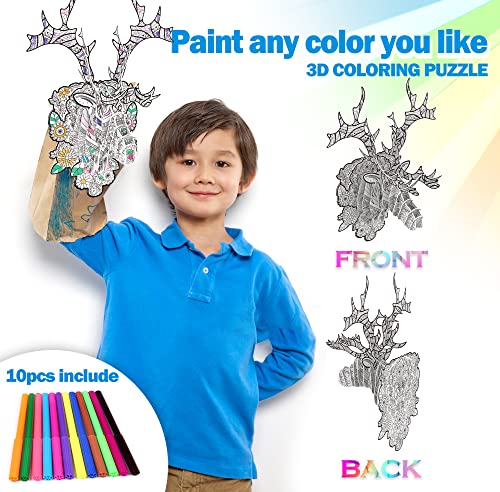 【Puzzle 3D da Colorare】: Puzzle 3D Bambini,confezione esterna adorabile di Alce, questo è il nuovo puzzle di pittura 3D del 2022, puzzle di pittura di Alce super grande,viene fornito con 10 diversi colori di matite acquerellate, i bambini possono dipingere i propri colori preferiti, pratica la corrispondenza dei colori,quindi cucili insieme in un puzzle 3D di Alce a colori completo,Esercita le tue abilità di coordinazione pratiche,Il miglior regalo di compleanno per 8 9 10 11 12