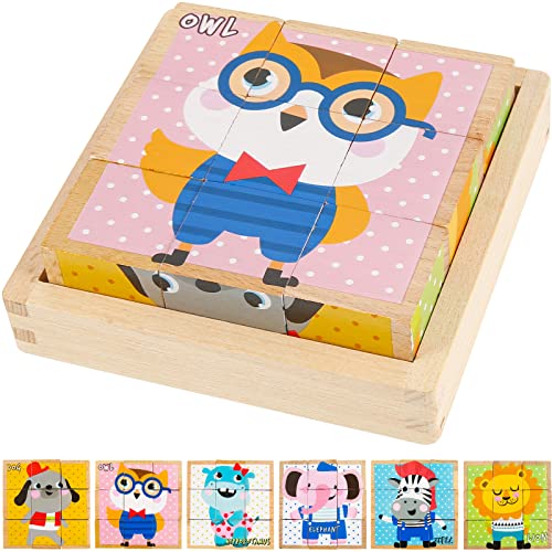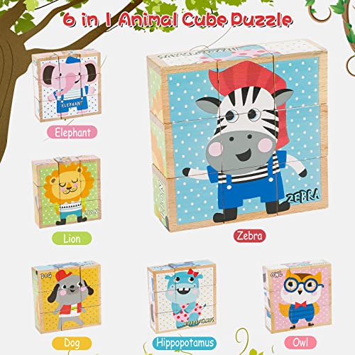 Puzzle di Legno a Forma di Cubo, Comius Sharp 3D Picture Cube Puzzle Games 6 in 1 Motivi Puzzle di Legno per Bambini da 1 2 3 4 Anni Giocattolo Educativo di Legno