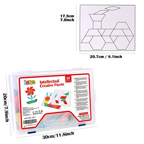 Lewo 203 PCS Puzzle di Legno Pattern Blocchi di Legno Puzzle di Forma Geometrica Giocattoli Educativi Precoci Classici Tangram per Bambini con 15 Carte Modello a Doppia Faccia