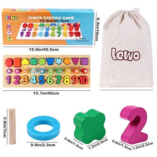 Lewo 3 in 1 Puzzle con Numeri in Legno Giocattoli Montessori Gioco di Conteggio Blocchi di Impilamento Matematico STEM Giocattoli Educativi per Bambini di età Compresa tra 2 3 4 5 Anni Bambini
