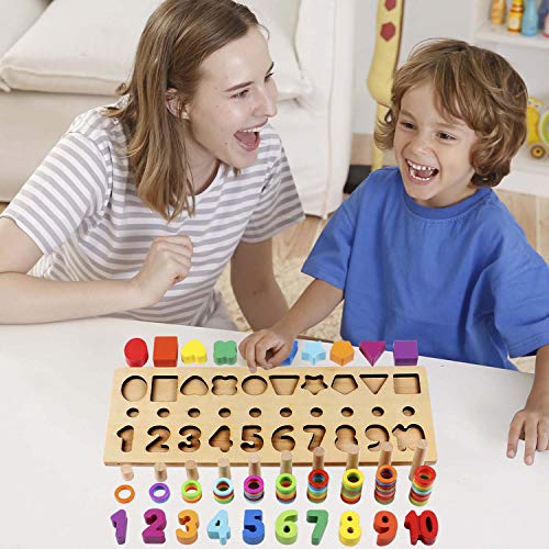 Giocattoli educativi prescolari in legno di grande valore: il gioco di conteggio del selezionatore di forme viene fornito con 1 pannello di smistamento, 55 anelli, 10 blocchi numerici, 10 blocchi di forma, 10 aste di diverse dimensioni, 1 custodia. La custodia rende facile per i bambini riporre dopo la partita e mantenere la stanza in ordine.